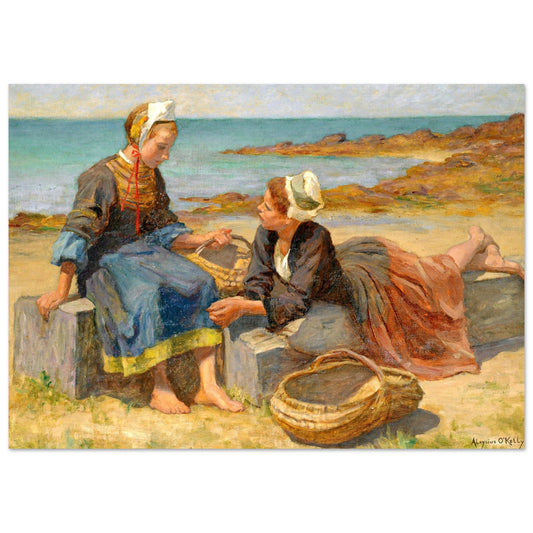 Breton Girls On a Beach By Irish Artist Aloysius O'Kelly Art Print