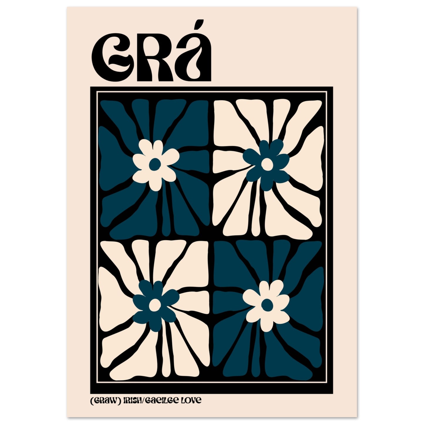 A bold typographic treatment of the Irish word Grá paired with graphic floral motifs, blending heritage language with contemporary design. Ideal for living spaces, bedrooms and thoughtful gifting.