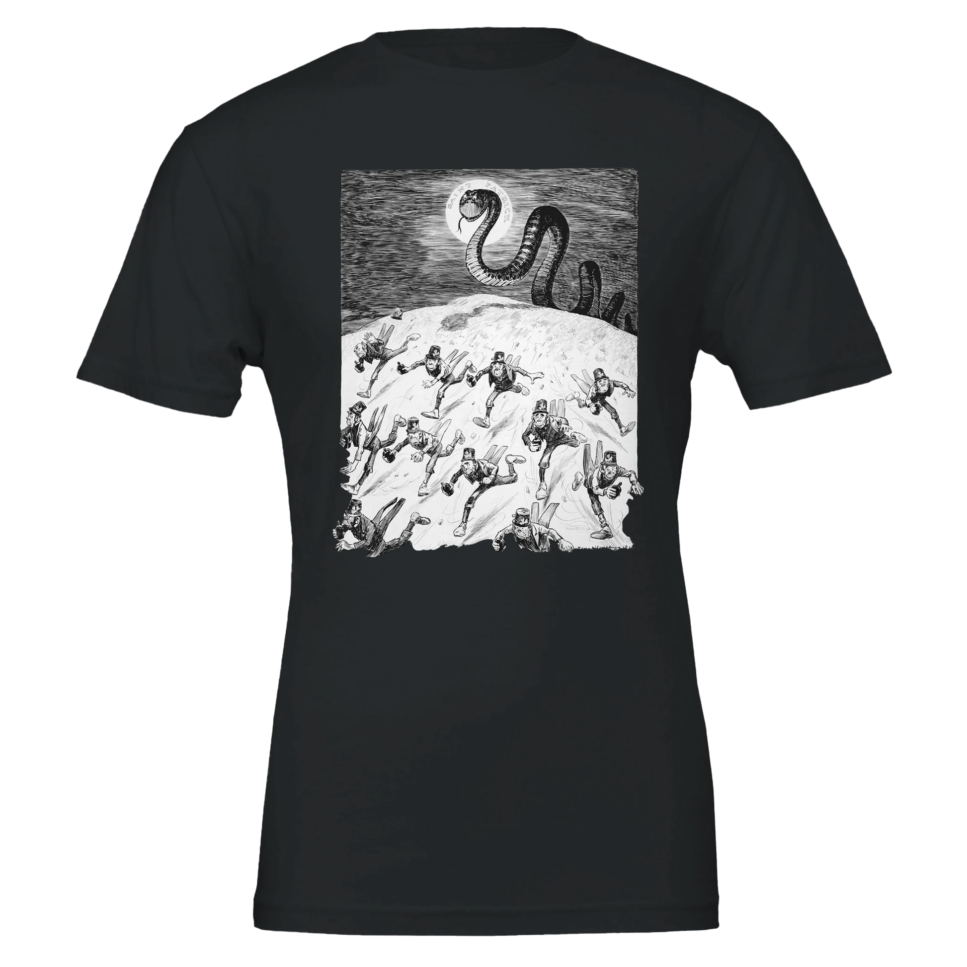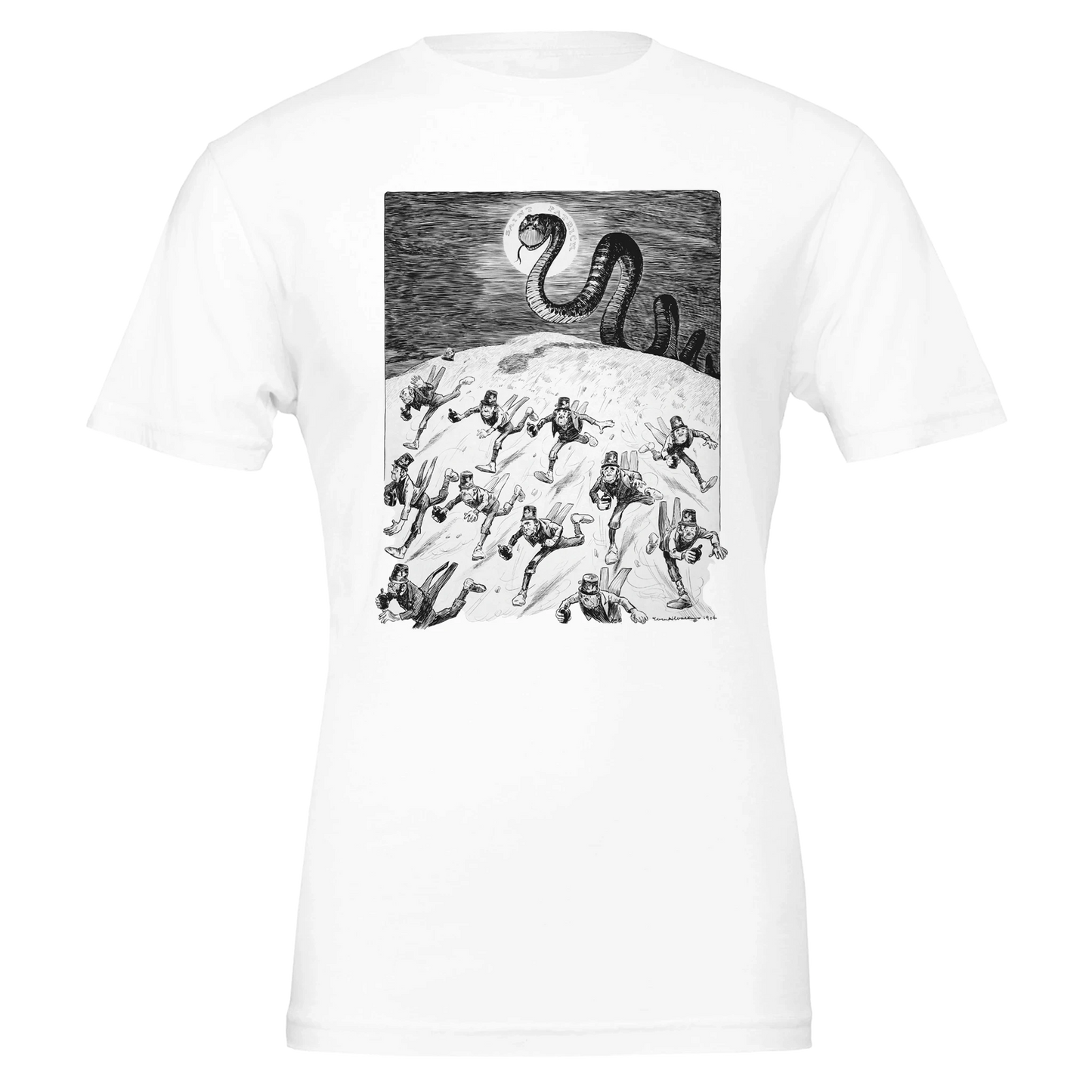 Step into history with this exclusive vintage-style T-shirt featuring William Henry Walker’s 1911 illustration! This whimsical and detailed artwork depicts a crowd of mischievous leprechauns, each clutching a bottle of booze, fleeing in terror as a massive snake—symbolizing Saint Patrick's legendary banishment of serpents from Ireland—chases them out of the Emerald Isle. A playful and historic twist on Irish folklore, this design is a must-have for St. Patrick’s Day, Irish heritage celebrations, or anyone who appreciates vintage art with a humorous edge!