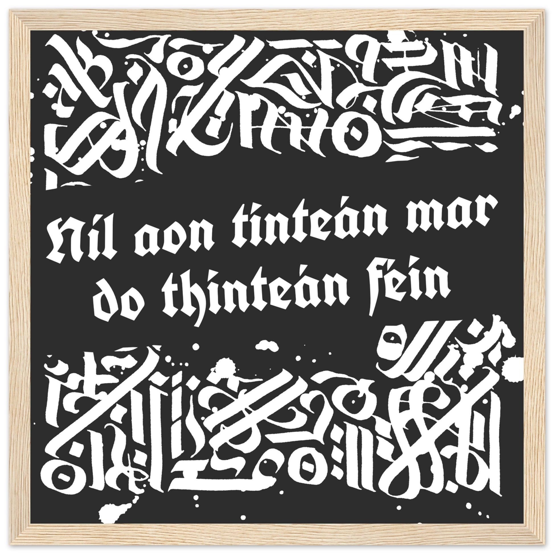 Feel the warmth of home with our modern framed art print – 'Níl aon tinteán mar do thinteán féin' which means 'There's No Place Like Home' in Irish. Let this sentiment adorn your space, reminding you of the comfort and love that home brings. Make it yours today and cherish the essence of 'home sweet home' daily.