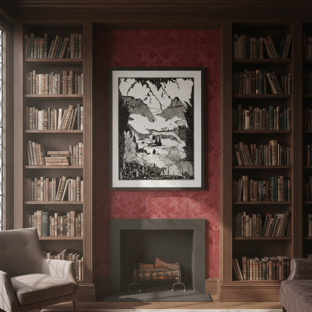 Perfect for libraries, studies, reading rooms, or gothic-inspired interiors, this piece is a tribute to Clarke’s brilliance and Poe’s imagination. A striking statement artwork and an exceptional gift for collectors of Irish illustration, fantasy art, or literary classics.