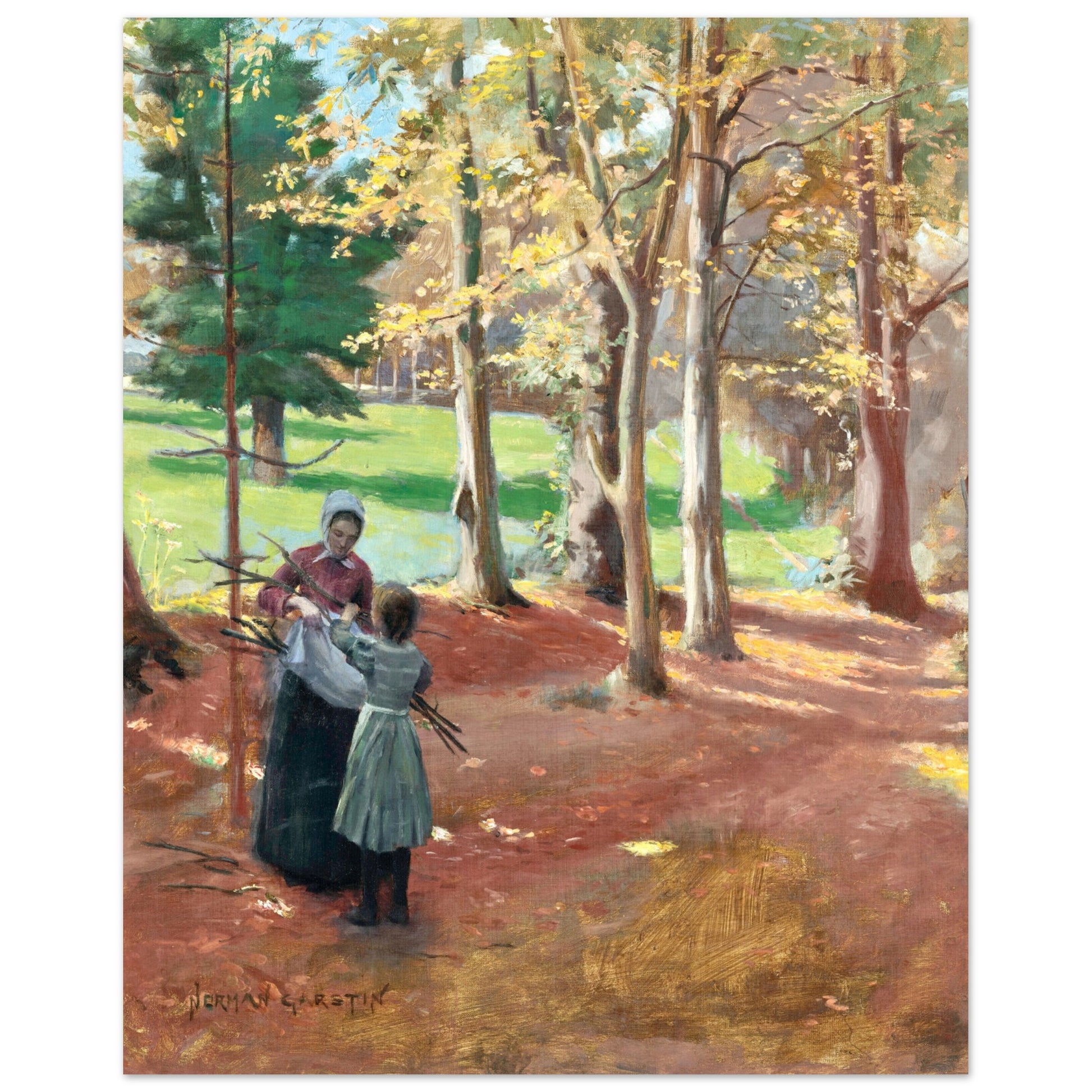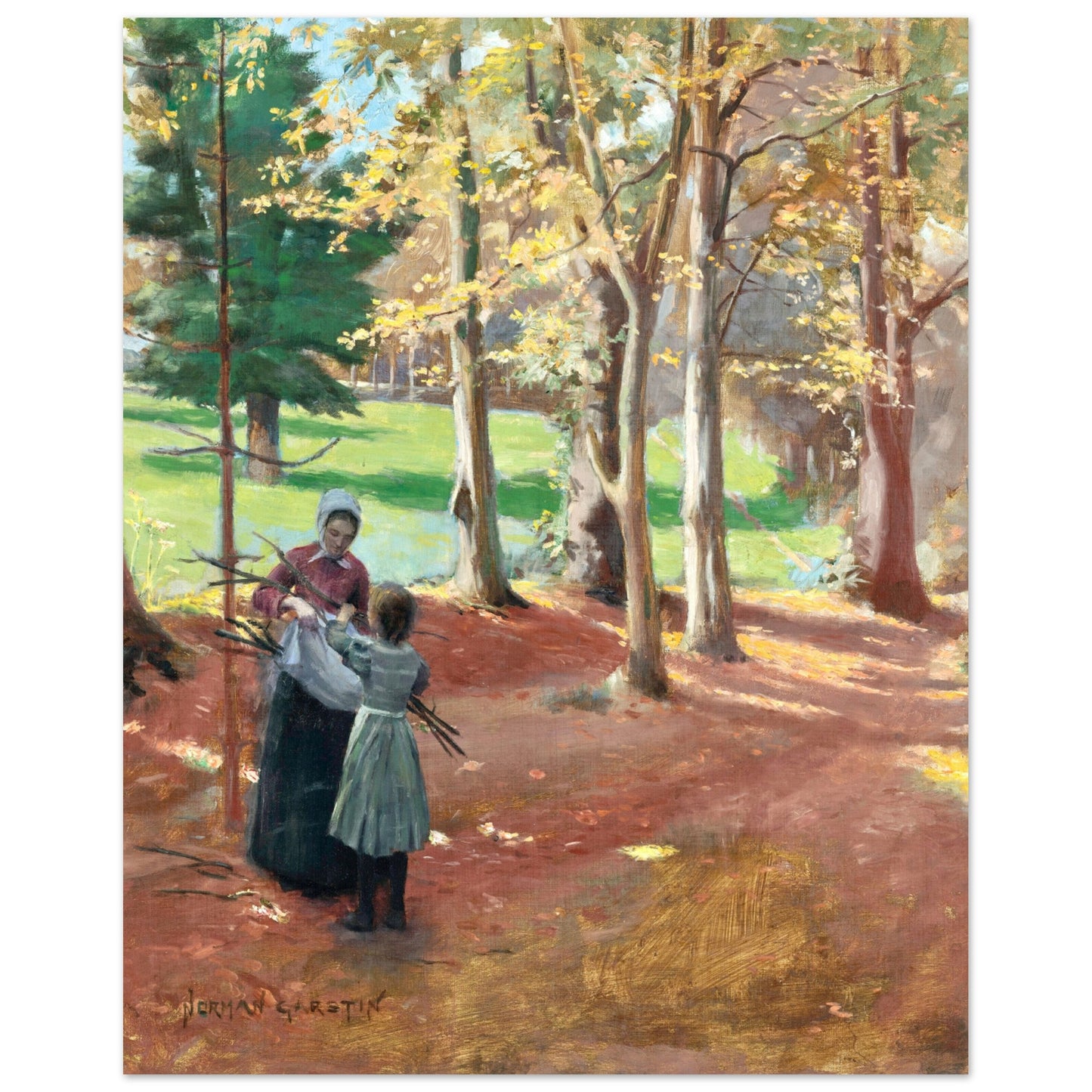 Enrich your home with the timeless elegance of Autumn by Norman Garstin, a cherished reproduction of the artist’s original 19th-century oil painting. This evocative work captures the serene beauty of a mother and child gathering firewood amidst a tranquil autumnal woodland, blending realism with a touch of lyrical mystique.