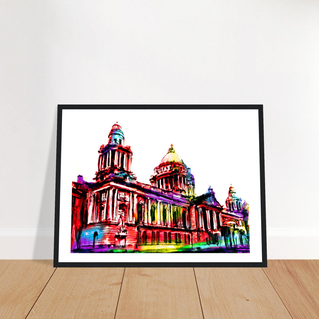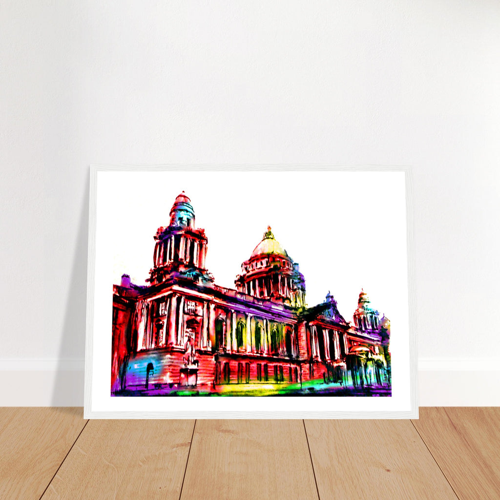Introducing our vibrant Belfast City Hall Art Print – a celebration of culture and history in a burst of colour. Capturing the essence of Belfast's iconic landmark, it infuses a kaleidoscope of hues reflecting the city's dynamic spirit. Perfect for commemorating your connection to Belfast or sharing its charm with someone special. Artwork by Irish Artist Ó Maoláin.