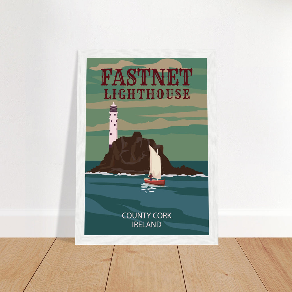 Fastnet Lighthouse County Cork Ireland Travel Retro Framed Art Print