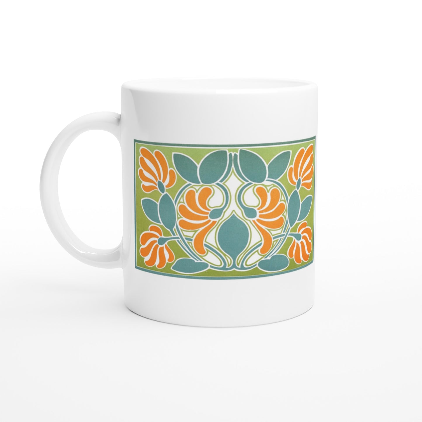 Celebrate the brilliance of James Ward, a Belfast-born artist, author, and teacher whose profound influence shaped Irish and British art in the late 19th and early 20th centuries. This 11oz white ceramic mug features his 1912 work, Harmonic Balance of Warm and Cold Colours, a symmetrical masterpiece blending orange and blue hues within a green border, radiating balance and creativity.