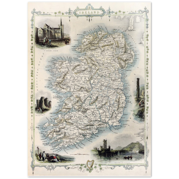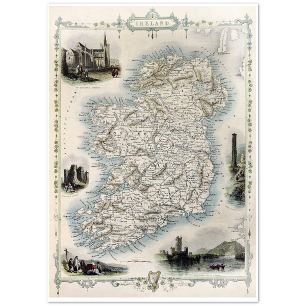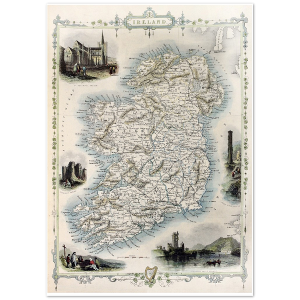 Journey back in time with this faithful reproduction of an antique map of Ireland. Rich with period cartography and decorative detail, it brings Irish heritage and classical style to any room.