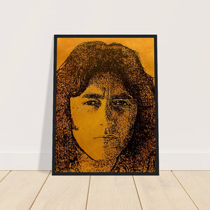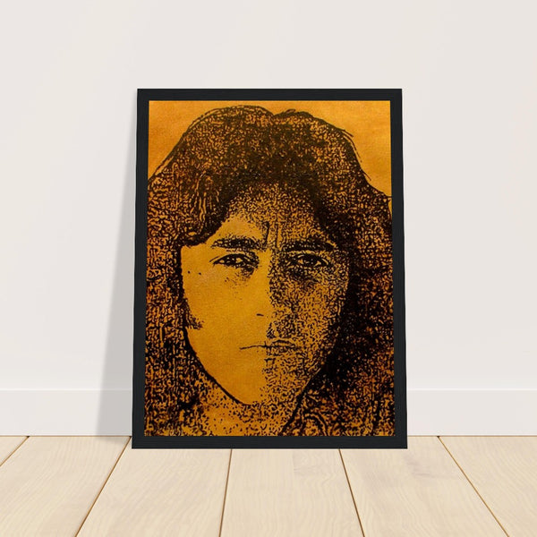 Immerse yourself in the captivating essence of Rory Gallagher with "Photo Finish," a stunning framed portrait in rich brown and golden hues. Crafted by Irish artist Ó Maoláin, this artwork beautifully captures Gallagher's charismatic presence without the Fender Stratocaster guitar. Perfect for admirers of blues rock and collectors alike, this piece pays homage to Gallagher's roots in Ballyshannon, celebrating his legendary talent with a warm and evocative palette. A striking addition to any space, embodying the essence of Ireland's musical legacy and the enduring spirit of a true guitar virtuoso.
