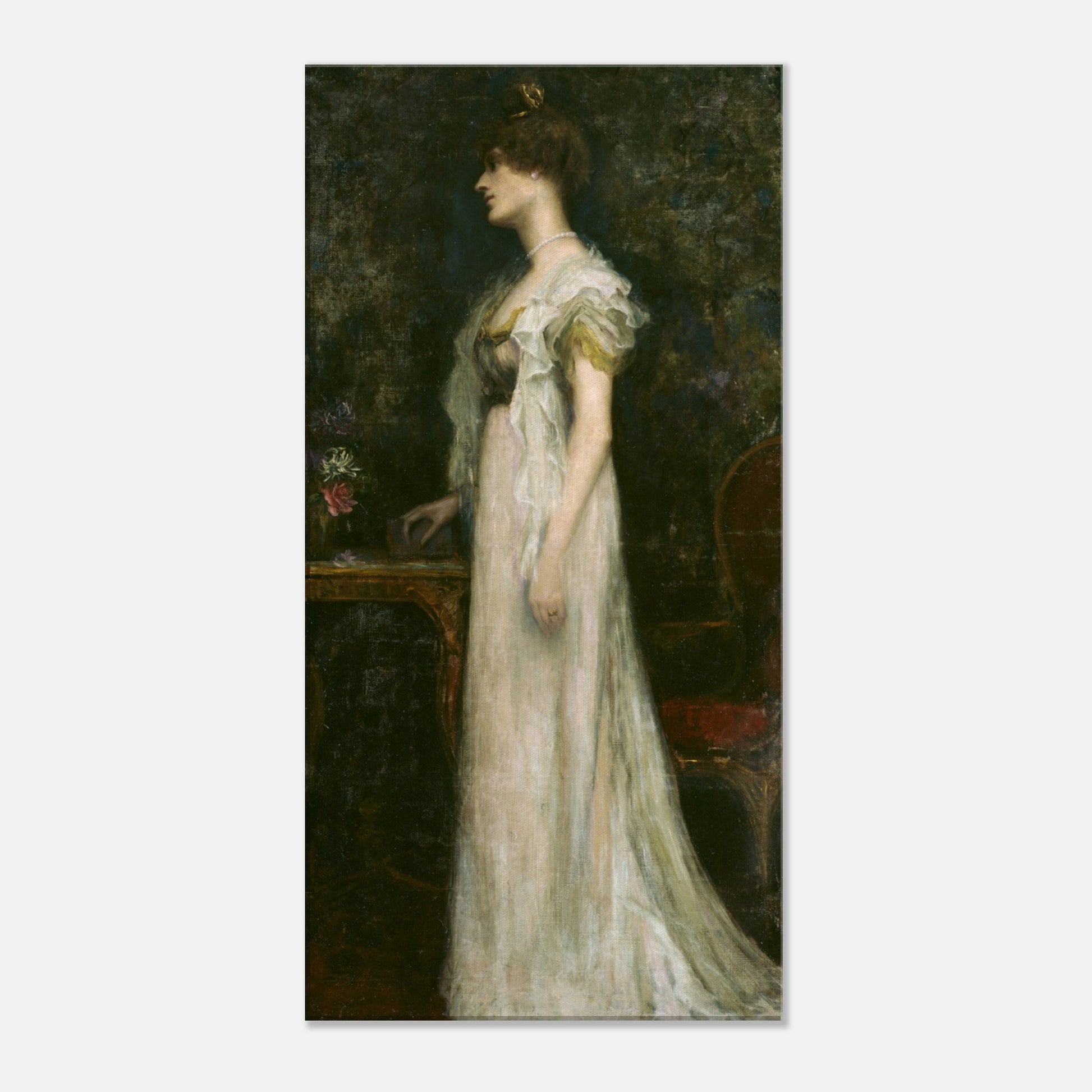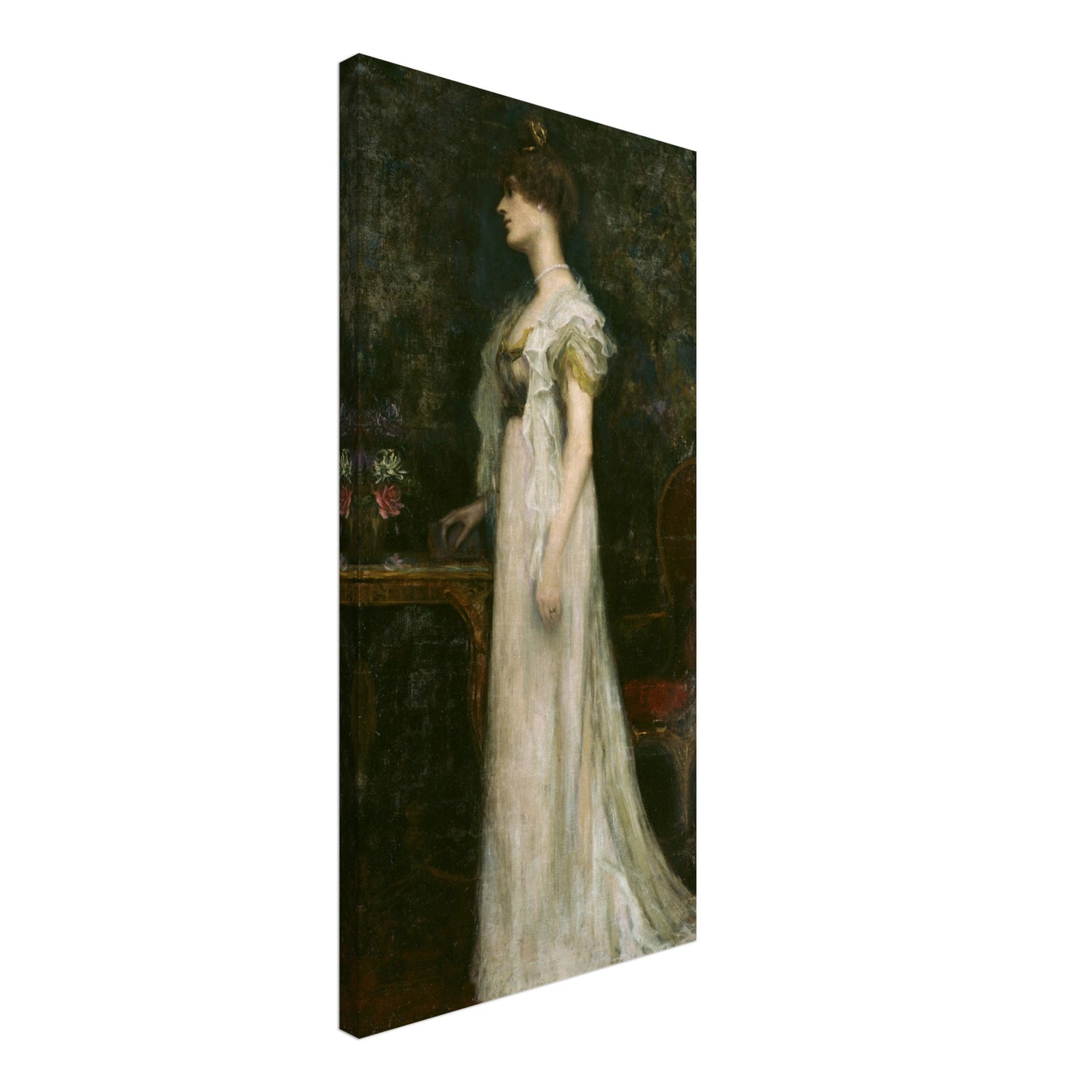 Adorn your space with a piece of history through this stunning gallery-wrapped canvas print of "The Artist's Wife, Constance, Comtesse de Markievicz". Originally painted by Casimir Dunin Markievicz in 1899, this captivating portrait captures the essence of Constance Markievicz—an iconic figure in Irish history who was not only an artist but also a pioneering revolutionary.