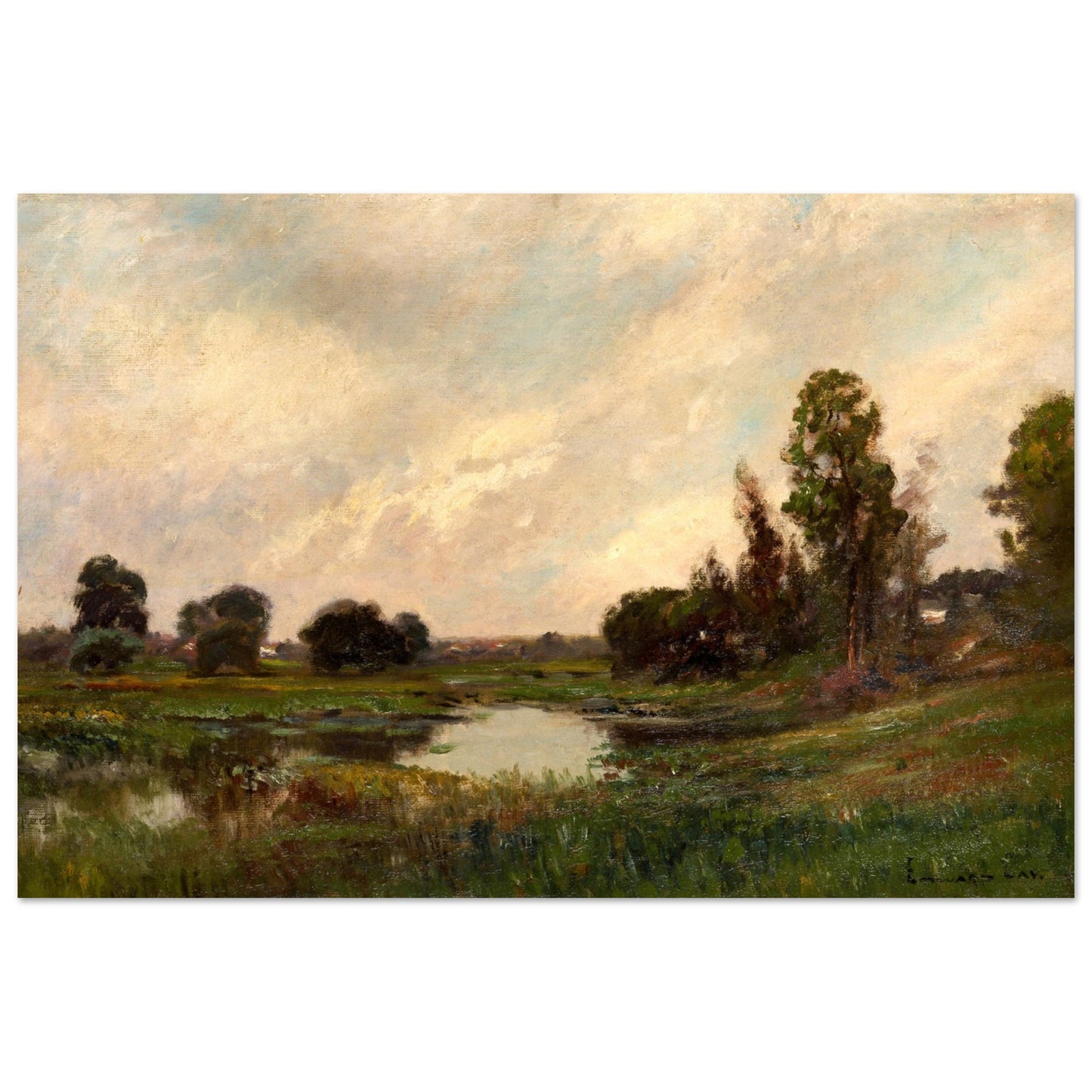 Immerse yourself in the tranquil beauty of nature with this stunning reproduction of The River by Edward Gay. A master of landscape painting, Gay captures the peaceful flow of a river as it winds through a lush, sunlit countryside. The gentle reflections on the water, soft sky, and rich greenery transport you to a serene, untouched world, offering a perfect moment of stillness and harmony with nature.