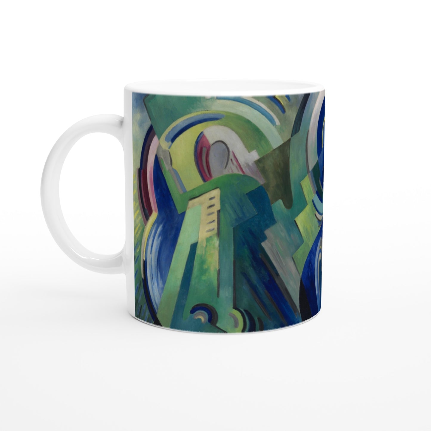 Celebrate Irish heritage and artistry every day with The Virgin of Éire Mug featuring the iconic design by acclaimed artist Mainie Jellett. This glossy white 11oz ceramic mug beautifully showcases Jellett's vibrant and timeless artwork, blending modern functionality with the elegance of Irish creativity.